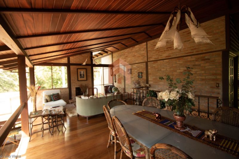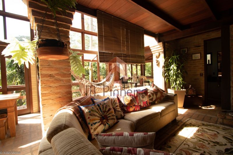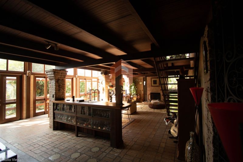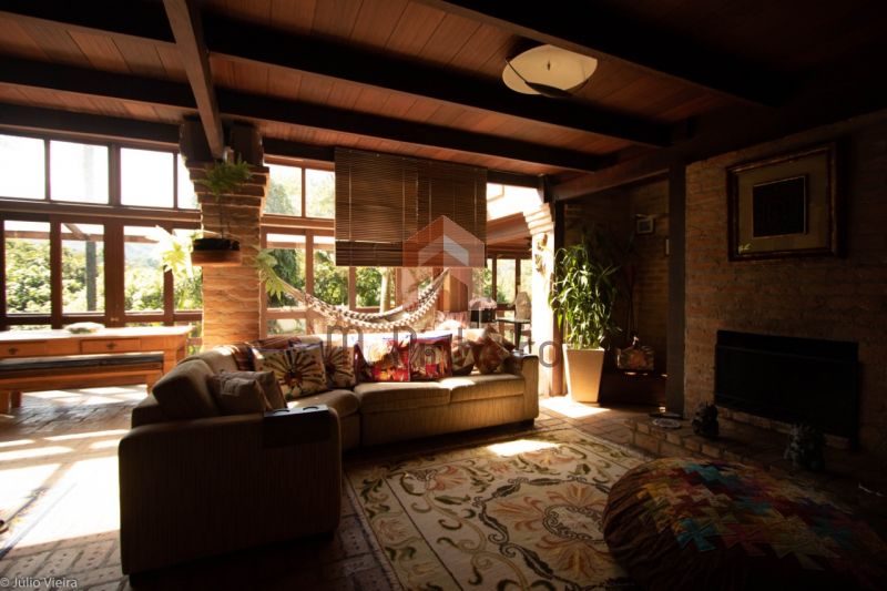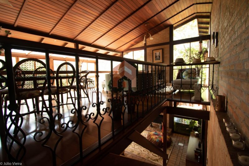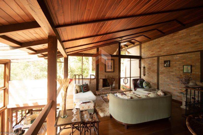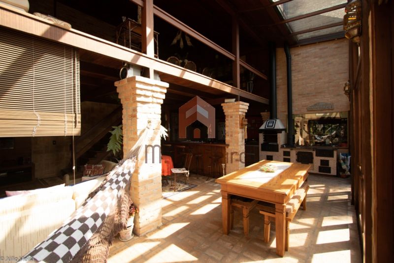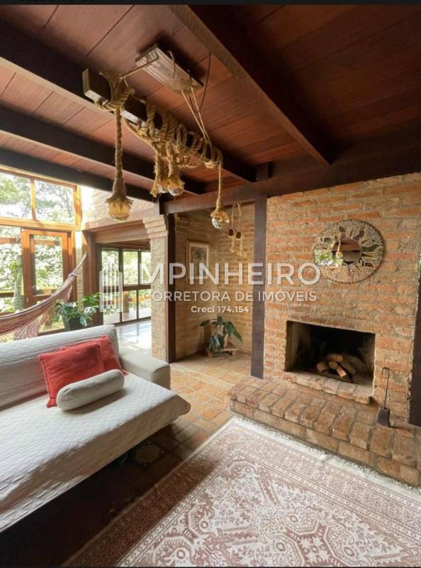 Casa em condomínio com área de terreno com 950 m e área construída de 330 m2 - sala de estar com lareira, atelie suite para hospede, escritório, lavanderia, cozinha com armários, sala social com lareira, lavabo, 1 suíte + 1 suite master com lareira e varanda. Venda com mobília Aceita financiamento