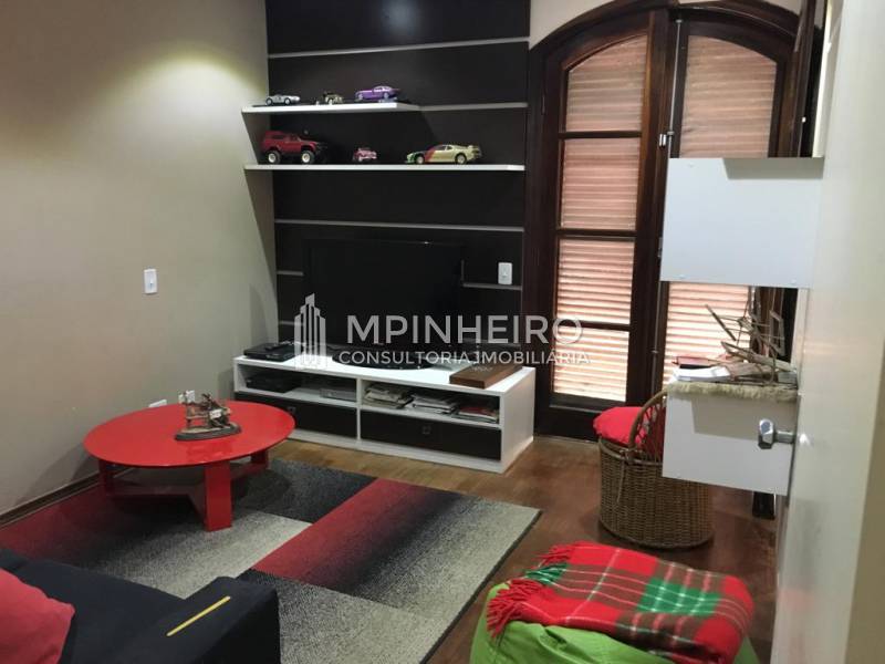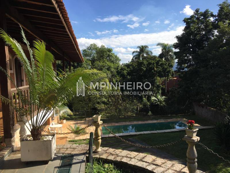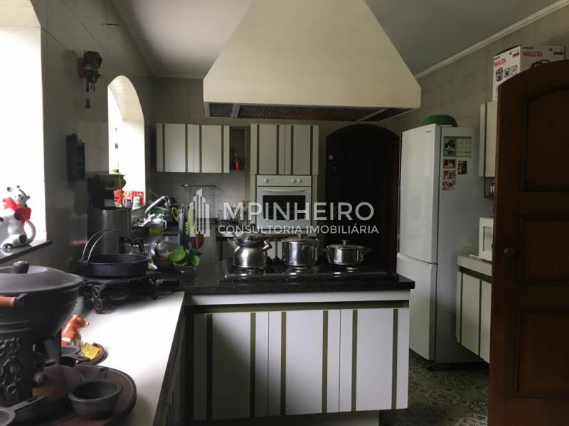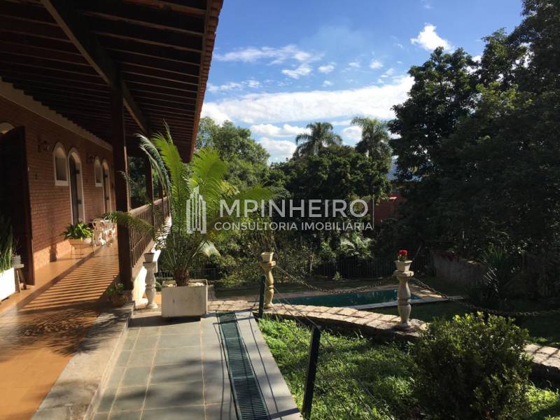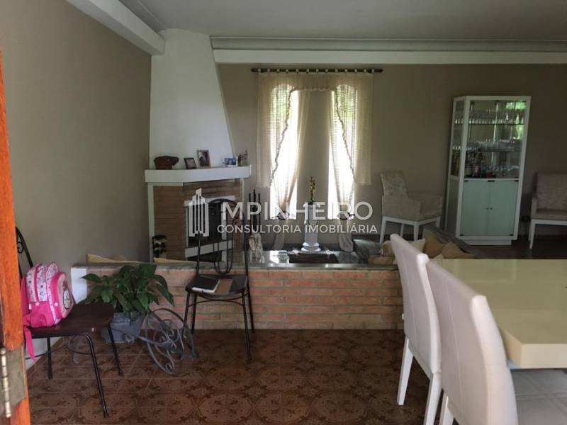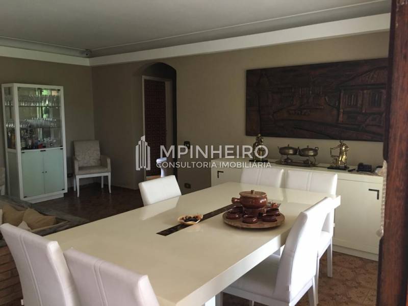 4 suítes, sendo 1 suíte a dependência de empregada Salas - 1 sala com 3 ambientes + 1 sala de Tv e lareira, 6 banheiros, 5 vagas pra carros, piscina com cascata e hidro, area gourmet com churrasqueira e forno a lenha