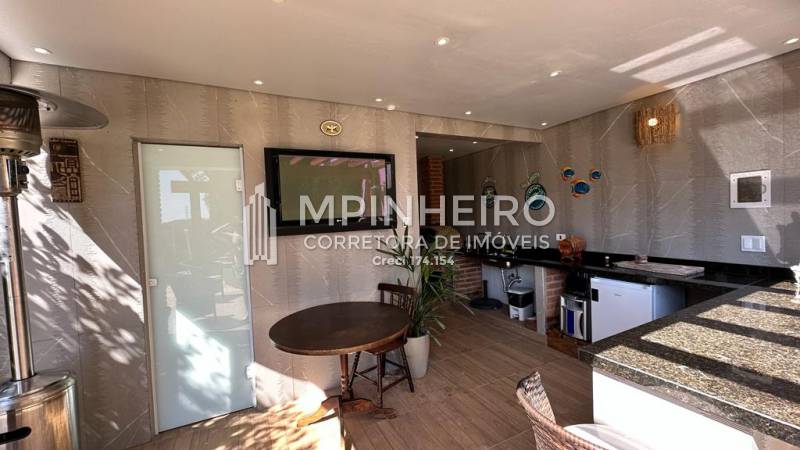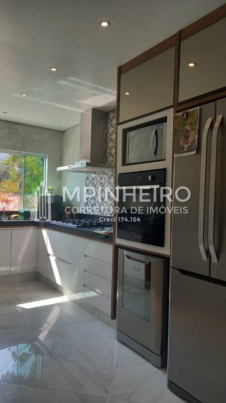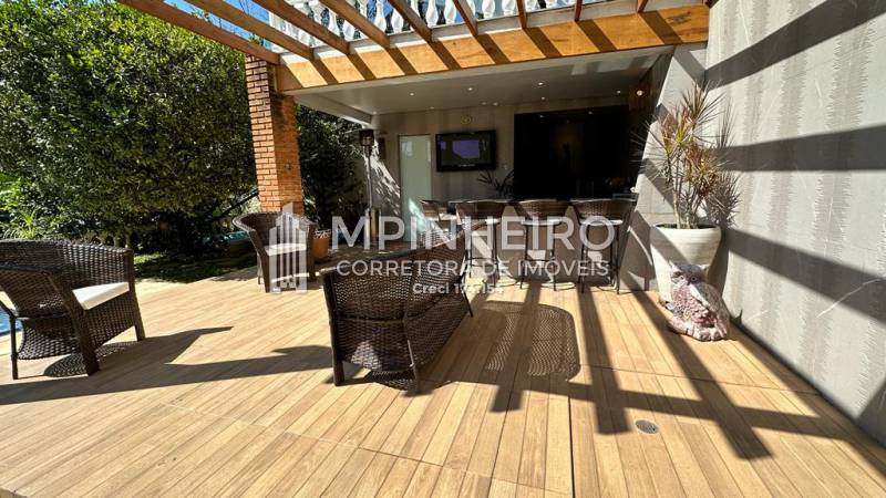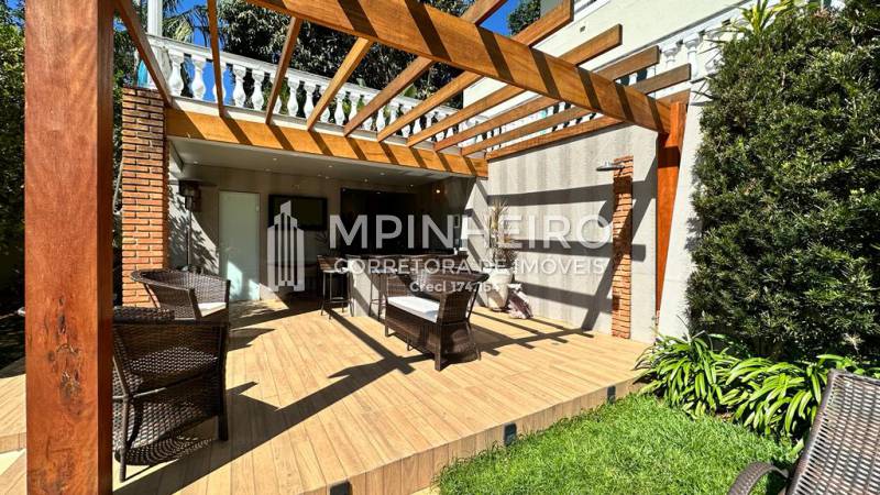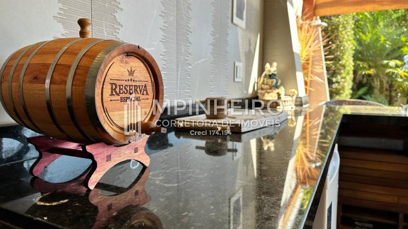 Residência em alto padrão com 3 dormitórios, sendo 2 suítes amplas, todas com varanda, escritório, cozinha em porcelanato e granito, com móveis planejados, eletrodomésticos embutidos, salas de jantar, estar e lareira, também em porcelanato, área gourmet com churrasqueira, forno de pizza, piscina, fire place, pergolado, garagem para 3 autos.