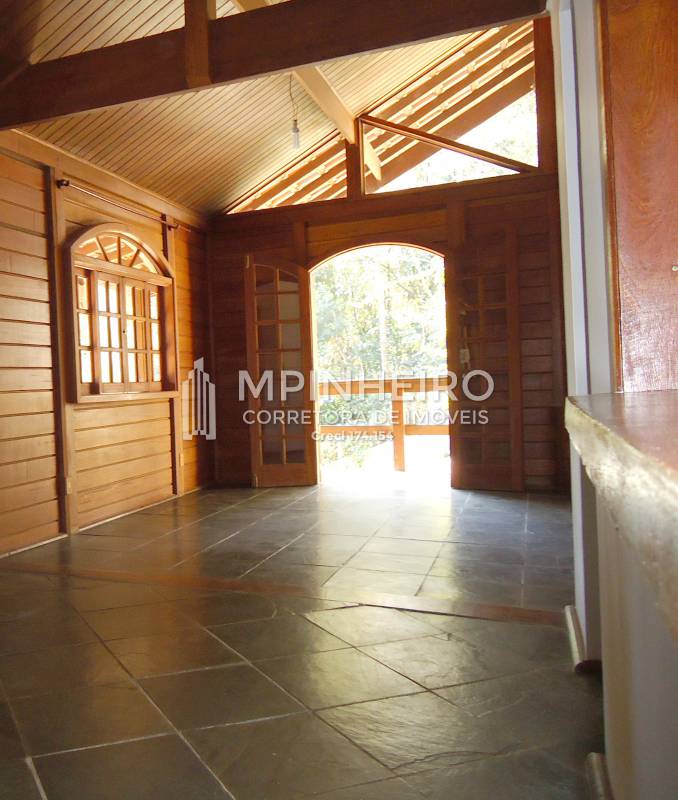 Casa mista com 2 suítes + 1 dormitório, lavabo, sala para 3 ambientes com lareira, toda avarandada com vista para a mata, cozinha americana, lavabo, garagem com portão automático com 2 vagas, parte inferior - espaço para um loft, escritório ou salão de jogos, banheiro e cozinha, churrasqueira