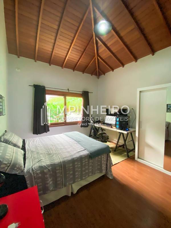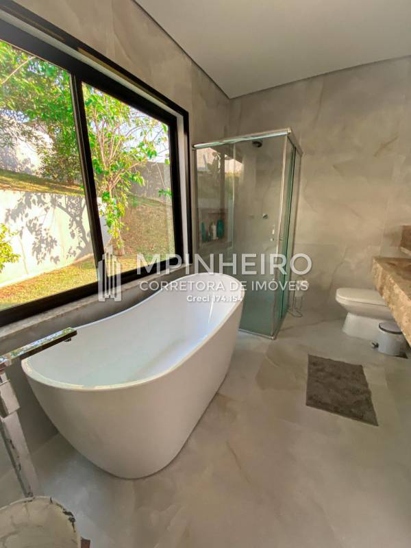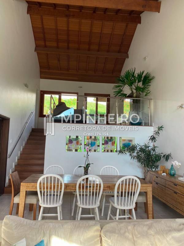 Residência alto padrão em condomínio fechado, com portaria 24 horas, com 2 suítes avarandadas, sendo 1 master c/ hidro e closet, mais 2 suítes estilo americano, lavabo, salas de jantar, estar e sala íntima no 2 andar, cozinha integrada com armários planejados, bem iluminada, churrasqueira, piscina, depósito, vista para a mata, área de serviço, sótão funcional, garagem para 2 carros.