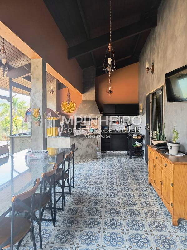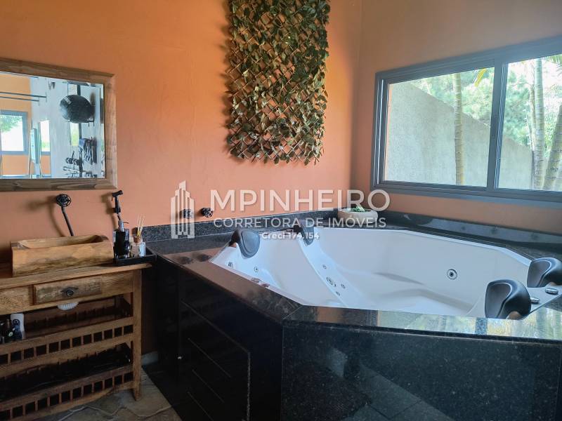 Casa em alto padrão com sala de jantar, tv, estar, 4 suítes, sendo 1 master com 2 closets, escritório, piscina, área gourmet completa, spa, jacuzzi, sauna seca, academia, casa de caseiro com 2 quartos, cozinha, banheiro e sala, despensa, lavanderia, 2 garagem independente para 8 carros cobertos, aquecimento solar, pressurizador, gerador, canil com 8 baias. Acabamento em alto padrão.