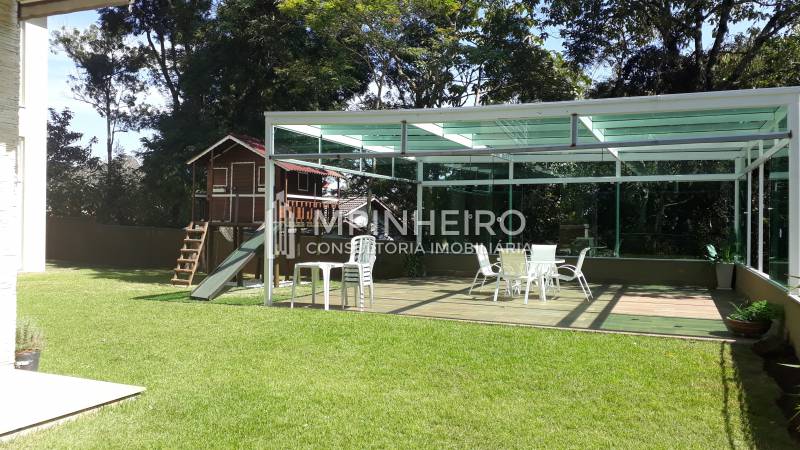 Casa em condomínio fechado, alto padrão, com 3 suítes (sendo 1 master) + 1 dormitório, sala ampla com pé direito duplo, lareira, sala de jantar, cozinha com armários planejados, cooktop, lavanderia, sala íntima ampla, cortinas elétricas nos dormitórios, monitoramento em todos os ambientes, solarium, 2 churrasqueiras completas, varanda, garagem para 3 autos.